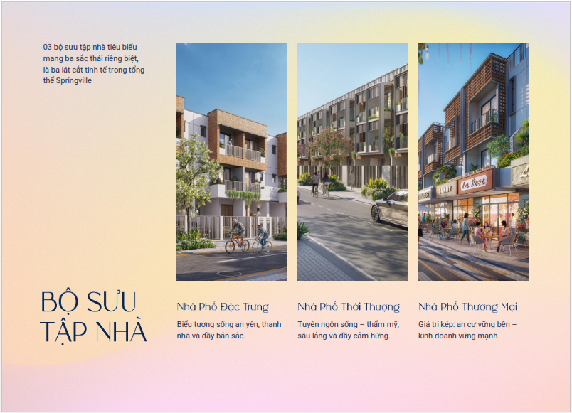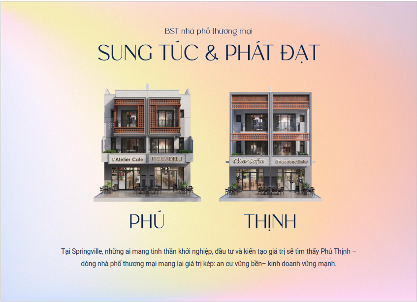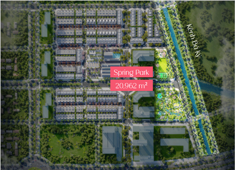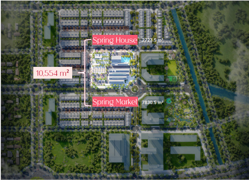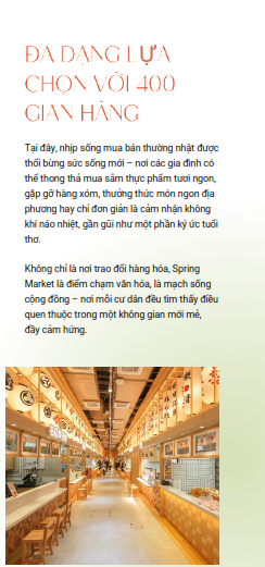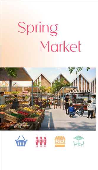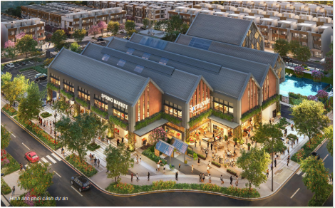 Spring martket là trung tâm thương mai mang kiến trúc mái liên hoàn đặc trưng gợi nhắc dấp dáng những khu chợ truyền thống Việt Nam nhưng được tái hiện qua ngôn ngữ thiết kế hiện đại, thoáng đãng và thân thiện